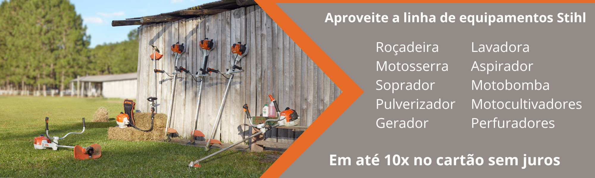 Aqui você encontra toda a linha de equipamentos Stihl com condições especiais: parcelamos em até 10x sem juros. É a qualidade que você confia, com o pagamento que cabe no seu bolso.