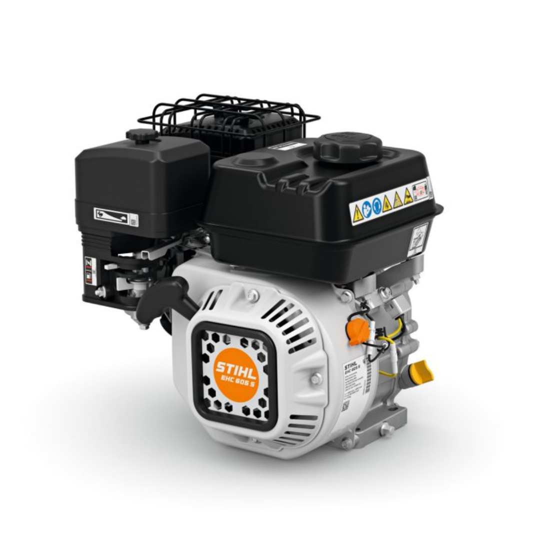 O STIHL EHC 605 S é um motor estacionário 4 tempos robusto, com sensor de óleo, filtro autolimpante e eixo 19,05×58,6 mm, entregando 6 HP e 212 cm³ para aplicações agrícolas e industriais.