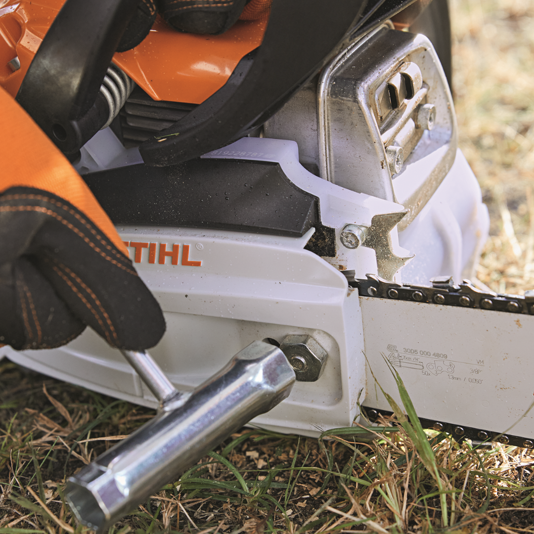 - Tensor lateral da corrente para ajuste rápido e seguro sem desmontar a proteção.